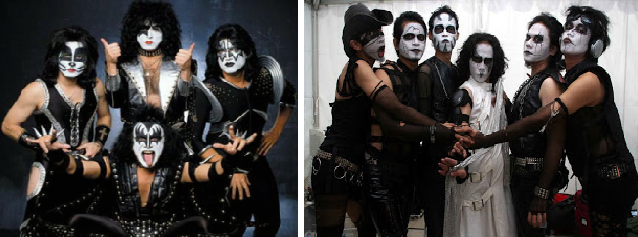Grup band Kuburan sempat menghebohkan industri musik Indonesia berkat konsep band yang cukup unik dan nyeleneh. Band ini memang menampilkan konsep dan dandanan yang unik. Semua wajah anggota Kuburan harus dicat dengan corak hitam-putih layaknya hantu atau setan. Hal ini sempat membuat Kuburan berada di puncak popularitas, meski akhirnya karir Kuburan makin tenggelam. Namun ternyata konsep semacam ini bukan yang pertama. Bagi penggemar musik rock legendaris, pasti tahu dengan grup band asal Amerika bernama Kiss. Band yang satu ini lebih dulu mempopulerkan konsep tersebut. Mungkin Kuburan menjadikan Kiss sebagai inspirasi tampilan mereka.